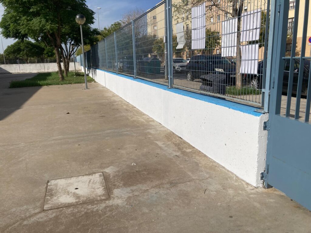 Como muchas recordaréis, el pasado curso conseguimos que, desde Distrito, nos pintaran de azul el exterior del muro de entrada, que estaba en muy mal estado. Ahora finalizan el trabajo pintando también, su interior de blanco.