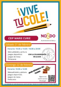 Por primera vez en nuestro colegio, la Delegación de Educación, Juventud y Edificios Municipales del Ayuntamiento de Sevilla organiza, los días 21 y 22 de febrero, dos jornadas de su programa VIVE TU COLE en colaboración con nuestra AFA.